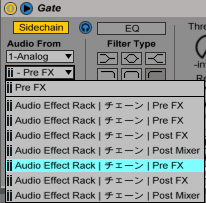 そして、後続のエフェクトラックの Pre Fx を選択します。